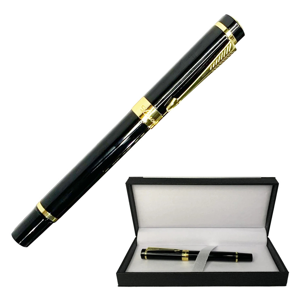 Корпус виготовлений із міцного металу з глянцевим покриттям, зручно лежить у руці та забезпечує комфортне письмо. Чорні чорнила роблять текст строгим і акуратним, ідеально підходять для документів.