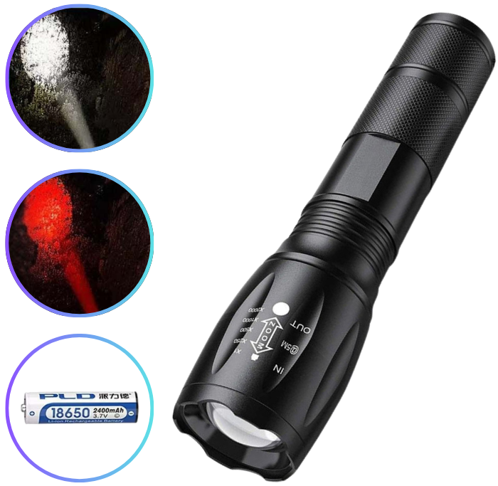 Комплектація: ліхтар, 1×18650 акумулятор, зарядний пристрій від USB