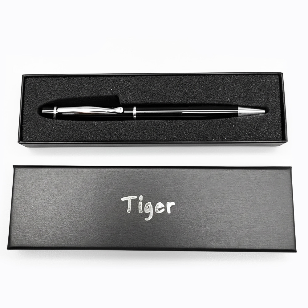 Стильна подарункова ручка Tiger — практичний аксесуар для щоденного використання та гідний варіант презенту. Чорний корпус із сріблястими вставками робить ручку універсальною та солідною.